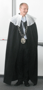 This week I had the honor to attend the defence of Mathias Frisch, student of Raimund Dachselt at the Otto von Guericke University in Magdeburg (now moving to the new lab in Dresden). I was very happy to review such excellent work, (in a committee that includes Prof. Reiterer, from Konstanz) but also to take part in the traditions of doctoral graduation. I think that it is very valuable that a doctoral graduation is approached as a festivity, and loaded with symbols of what it means to be a scholar. These include the new doctor having to wear a very heavy chain (that represents the loads awaiting in his future career),