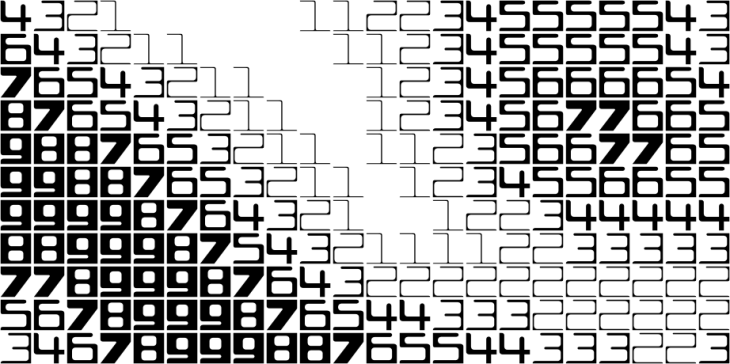 Fatfonts are designed so that the amount of dark pixels in a numeral character is proportional to the number it represents. For example, “2” has twice the ink than “1”, “8” has two times the amount of dark ink than “4” etc. You can see this easily in the set of characters below: